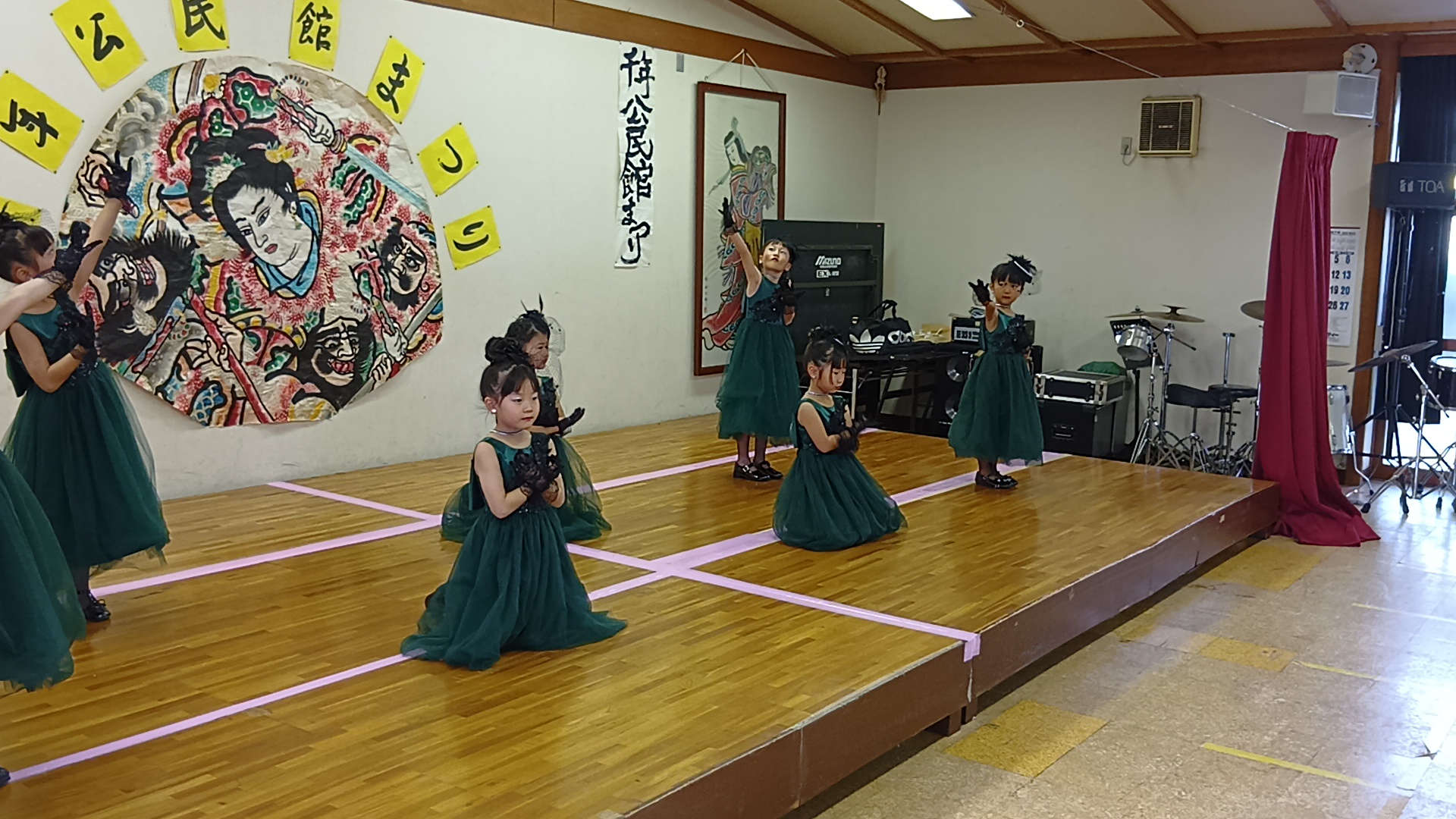 年長児が園を代表して、地域のお祭りに参加してきました。披露した演目は先日のお遊戯会で踊ったものを保護者の方、地域の方に見てもらいました。初めてのステージで緊張しながらでしたが、最後まで年長児らしく踊りきってくれました。 |